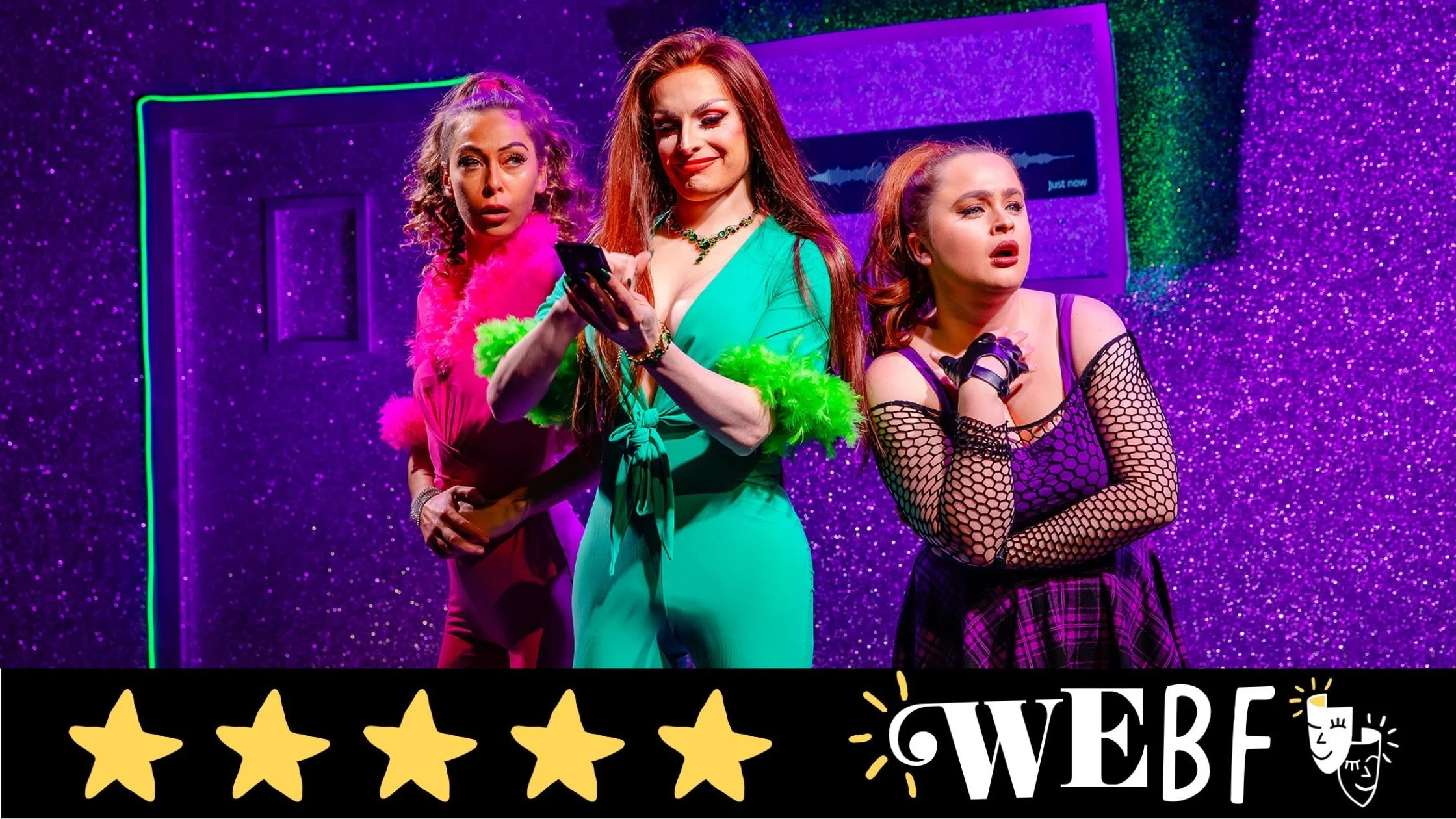 Song arrangements work incredibly well in this production with nods to musical theatre; one of the highlights being Tether, Green and Warren-Green performing a twist on Hamilton’s ‘The Schuyler Sisters’.