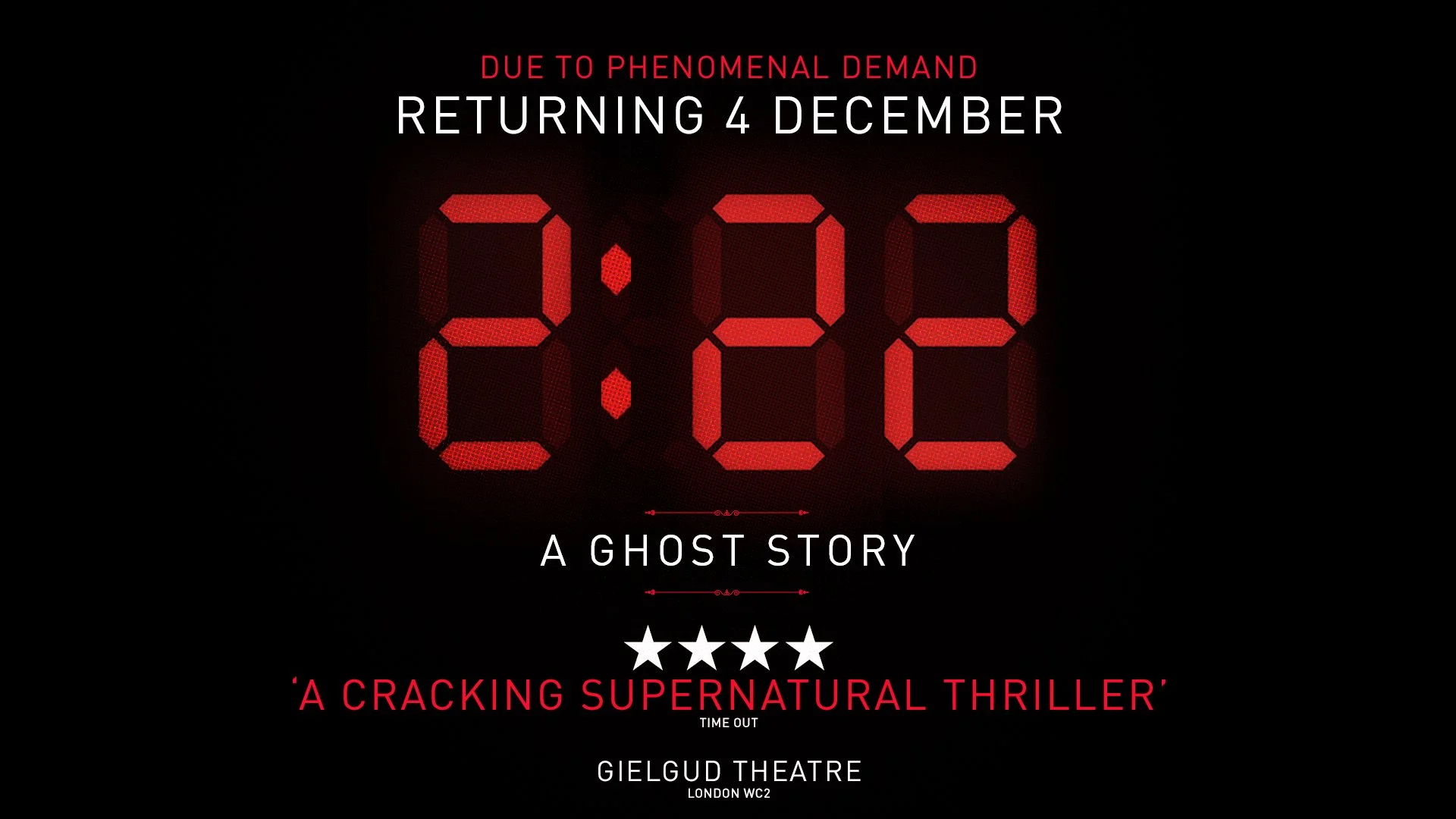 2.22 - A Ghost Story is written by award-winning writer Danny Robins, creator of the hit BBC podcast The Battersea Poltergeist and it is directed by Matthew Dunster. Intriguing, funny and scary, it takes audiences into one adrenaline fueled night where secrets will emerge and ghosts may appear….What do you believe? And do you dare to discover the truth?