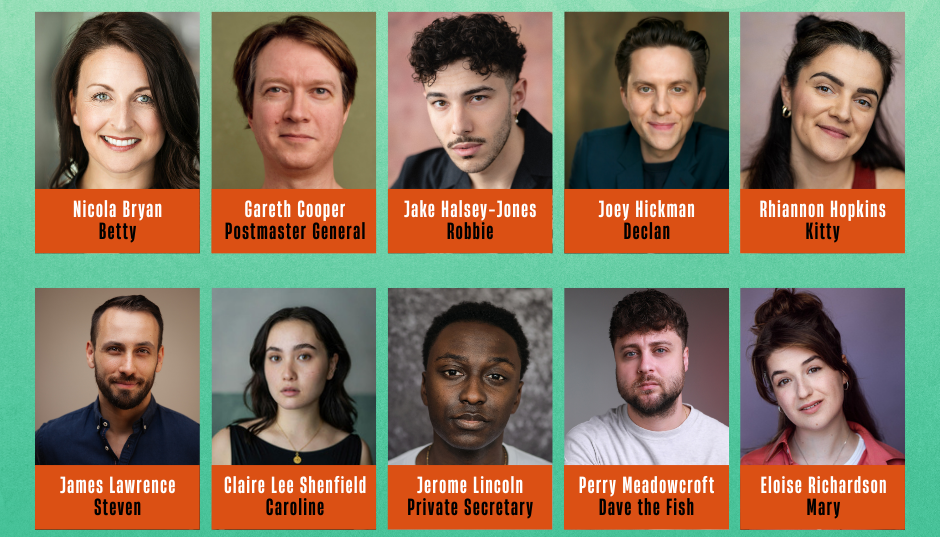 The talented cast of actor-musicians includes: Nicola Bryan (Mamma Mia!, International tour) as Betty, Gareth Cooper (One Man, Two Guvnors, New Vic Theatre) as Postmaster General, Jake Halsey-Jones (Hamilton, West End) as Robbie, Joey Hickman (Noël and Gertie, UK tour) as Declan, Rhiannon Hopkins (The Lion, The Witch and the Wardrobe, UK and Ireland tour) as Kitty, James Lawrence (Doctor Who: Time Fracture, Immersive Everywhere) as Steven, Claire Lee Shenfield (The Rivals, Orange Tree Theatre/Theatre Royal Bath) as Caroline, Jerome Lincoln (Standing At The Sky’s Edge, West End) as the Private Secretary, Perry Meadowcroft (JUDY!, Arts Theatre) as Dave the Fish, and Eloise Richardson (Dick Whittington and His Cat, New Wolsey Theatre) as Mary.