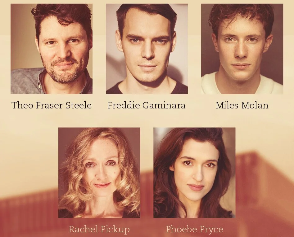 Directed by Philip Wilson, Theo Fraser Steele (soon to be seen in the new series of The Crown as Timothy Laurence) leads the cast as George, alongside Freddie Gaminara (Light Falls, Royal Exchange Theatre, Manchester) as Male Paramedic/Mr Strunk/Alex/Nurse/Bartender, Miles Molan (professional debut) as Kenny/Jim, Rachel Pickup (Still Life, The Mill at Sonning) as Charley, and Phoebe Pryce (The False Servant, Orange Tree Theatre) as Female Paramedic/Mrs Strunk/Maria/Doris.