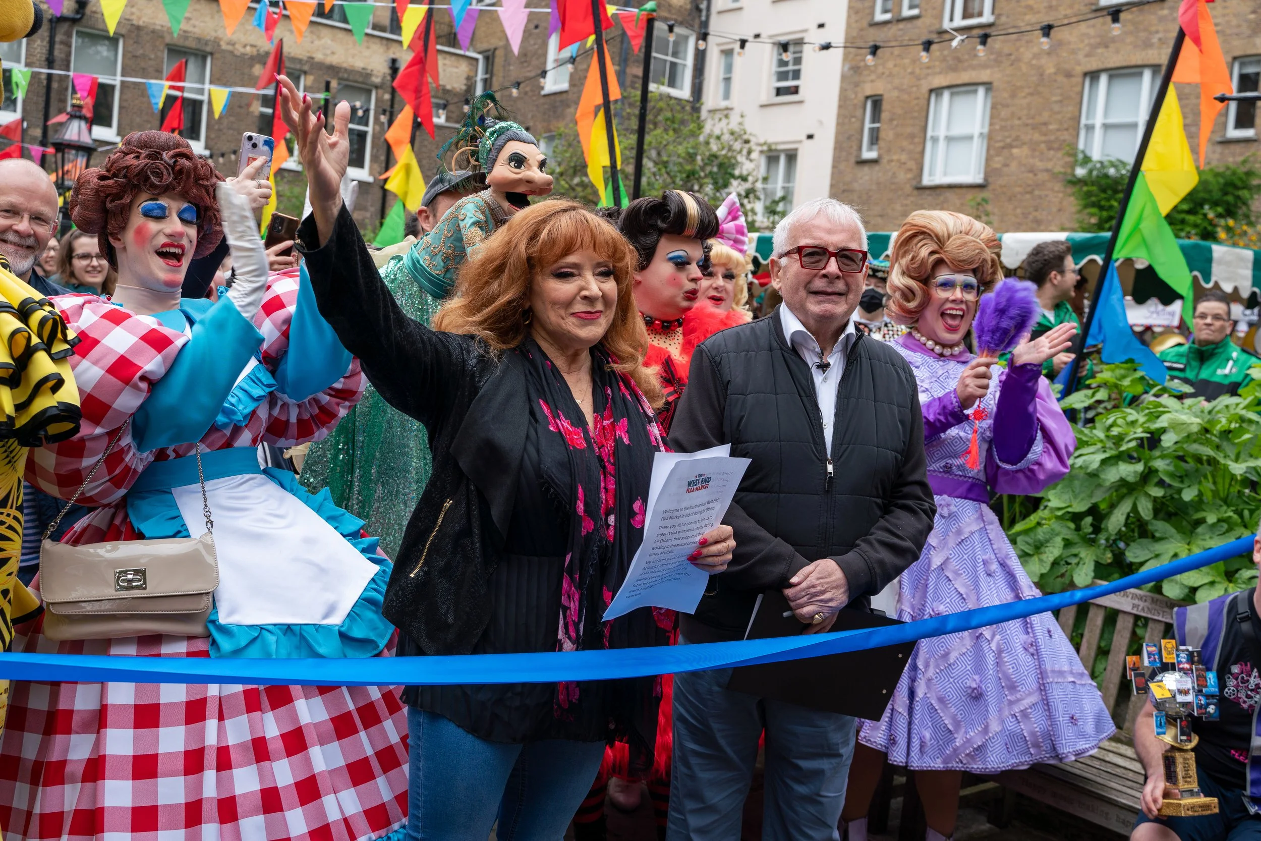 Many other West End shows had stalls including Back to the Future, Cabaret at The Kit Kat Club, Disney on Stage including Frozen and The Lion King, Guys and Dolls, Hamilton, Hadestown, Les Misérables, Mamma Mia, Moulin Rouge, Mrs Doubtfire, Operation Mincemeat, Phantom of the Opera, SIX, Sister Act, The Book of Mormon, and The Play that Goes Wrong, and other attractions included; Go Live Theatre Projects, ATG Touring Productions, Theatrical Memorabilia, Tombola, West End Charity Football Club Penalty Shoot-out, My Shot! The Pearly Kings and Queens, several Panto Dames and Flea market favourite Psychic Su Pollard told fortunes!