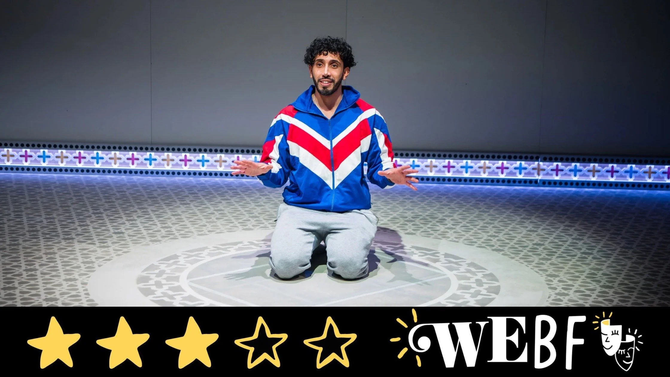The concept of a one-man show is an impressive feat, and Ali is certainly a vibrantly energetic actor who brings plenty of passion to his performance. Having just one actor onstage means that Ali multi-roles as every character in the show, such as Yasser’s father or friend from college. Occasionally, the transitions between different characters are not entirely clear, perhaps different body language, costume accessories or even use of voice overs could have aided this as a slight change in tone of voice is not always clear to the audience as an indicator of a character other than Yasser speaking.