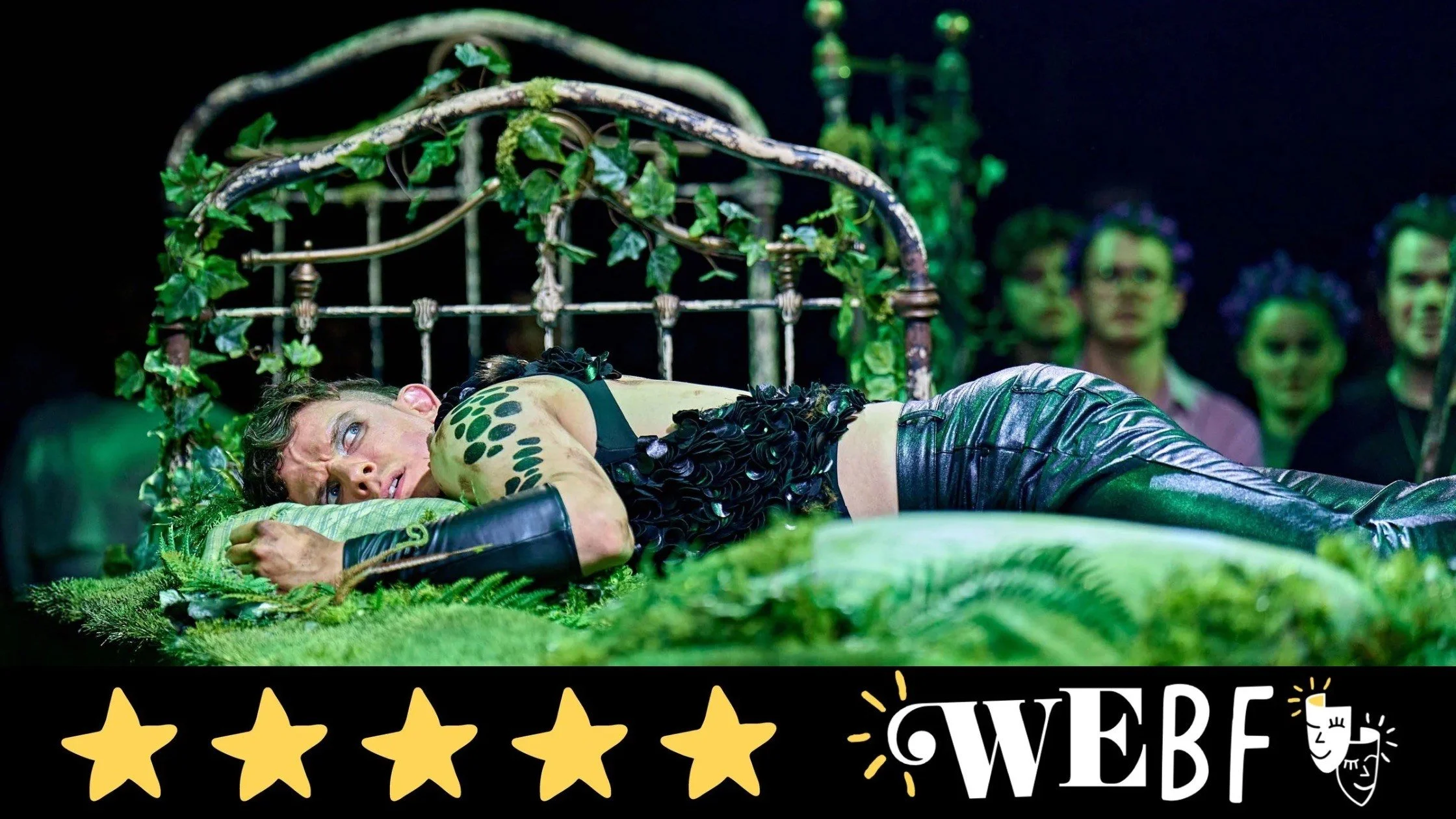 It must be said that this show is very camp in the best way. The campness and willingness to embrace sexual freedom really heightens the hilarity of Puck and Titania’s shenanigans and shows off the strength of the love potion flower. There is a point when the flower gets so close to Lysander and Demetrius during one of their fights that they end up passionately kissing each other as a result. Although the real stand out moments are within Oberon’s infatuation with Bottom, resulting in a lot of sexual tension and humour as a result of this. We never thought we’d see Bottom as a donkey flirting with Oberon in a bubble bath and we are here for it!