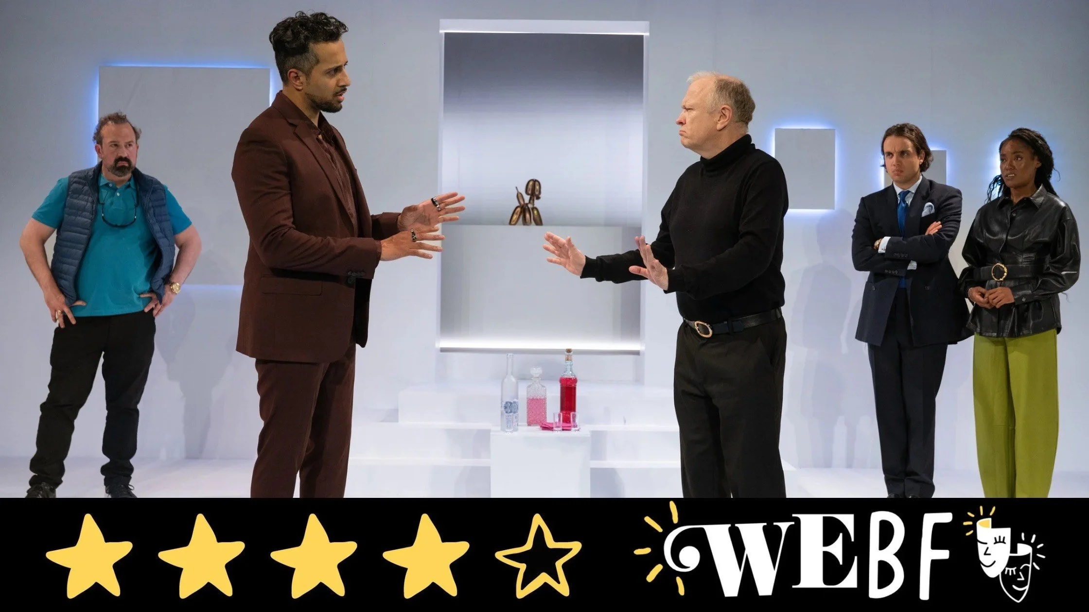 The stage is set in blinding white, and stays that way for the duration. Eleanour Wintour’s design draws the eye to the literally and figuratively colourful characters that occupy the play. Christopher (played by Kember himself) is your typical posh Brit, struggling to remain polite in the face of increasingly elevated stakes. He and his endlessly professional colleague Milly (Arsema Thomas) are attempting to sell a newly-discovered Da Vinci for a ridiculous sum of money, on behalf of its owner, a dubious Russian oligarch (John Albasiny). When it becomes apparent that the painting is a fake, they must contend with the overzealous all-American Tony (Steve Zissis) who is trying to buy it on behalf of a Middle-Eastern prince (Fayez Bakhsh). Things get hairy when these two symbols of Eastern power try to out-threaten each other when the painting’s authenticity is questioned, with Christopher and Milly caught in the middle of their power struggle.