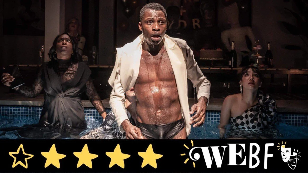 Daddy at the Almeida is an incredible feat of theatre in its blend of styles, unapologetically and successfully mixing an expressionistic and stylised approach played out on a naturalistic set and very truthful performances. One moment, an actor is swimming in a pool and the next they are being serenaded by an ensemble of gospel singers. Director Danya Taymor has created a beautiful collage of theatrical styles that exist in perfect harmony with one another in this new melodrama by Jeremy O. Harris.