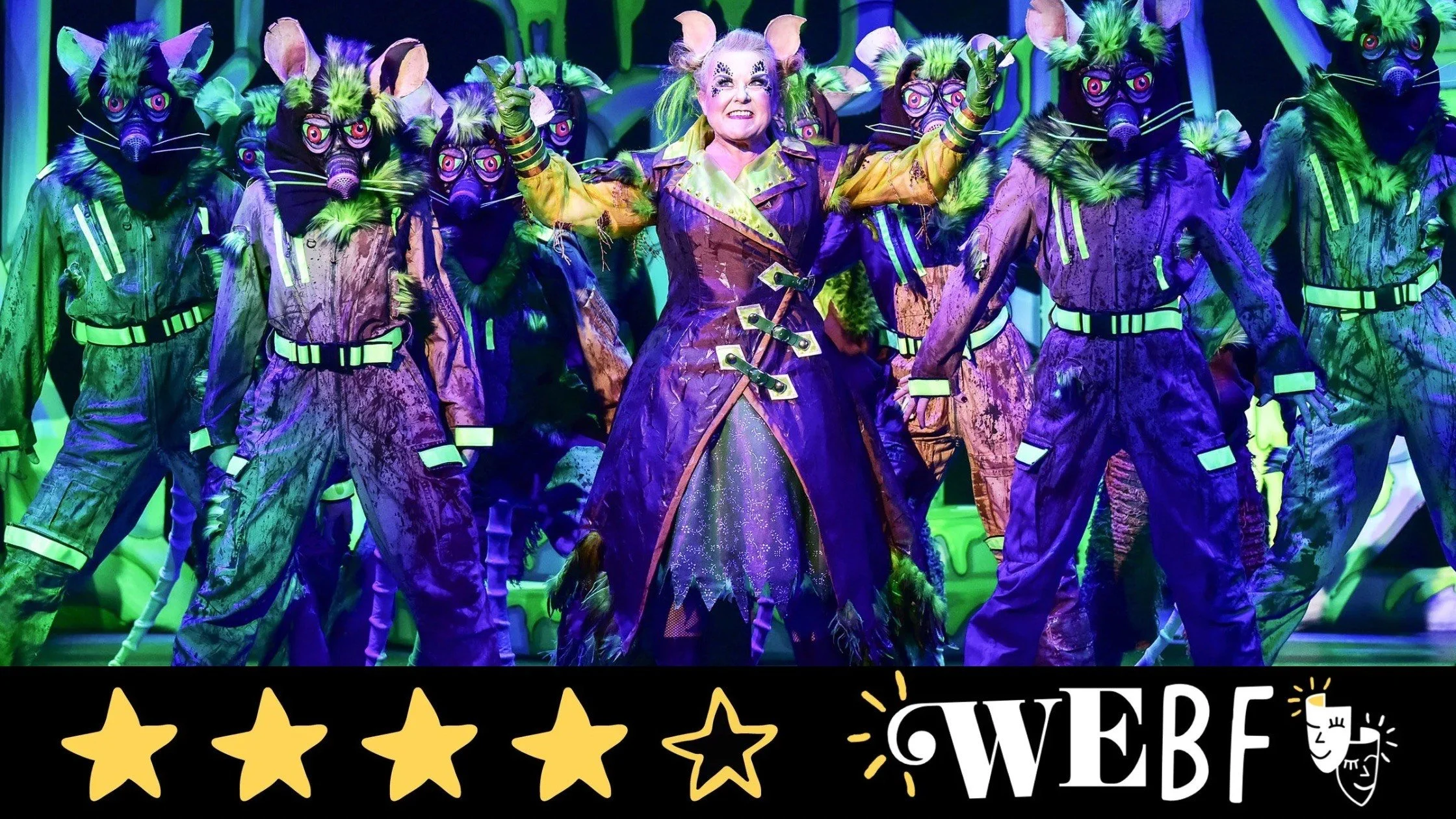 Morgan Brind’s script is quite inventive, changing many of the settings and character backstories but still giving us the traditional story beats. Some of these changes don’t add much, but giving a backstory as to why there are suddenly human sized rats everywhere is a fun addition. Brind also designs the production and the show looks stunning. The set and costumes are wonderfully colourful. Every year it is impressive what they can do given we’re in the middle of the cycling velodrome rather than a traditional theatre with flies! It would have been nice to have an extra front cloth or two so the ‘show cloth’ wasn’t reused for numerous scenes.