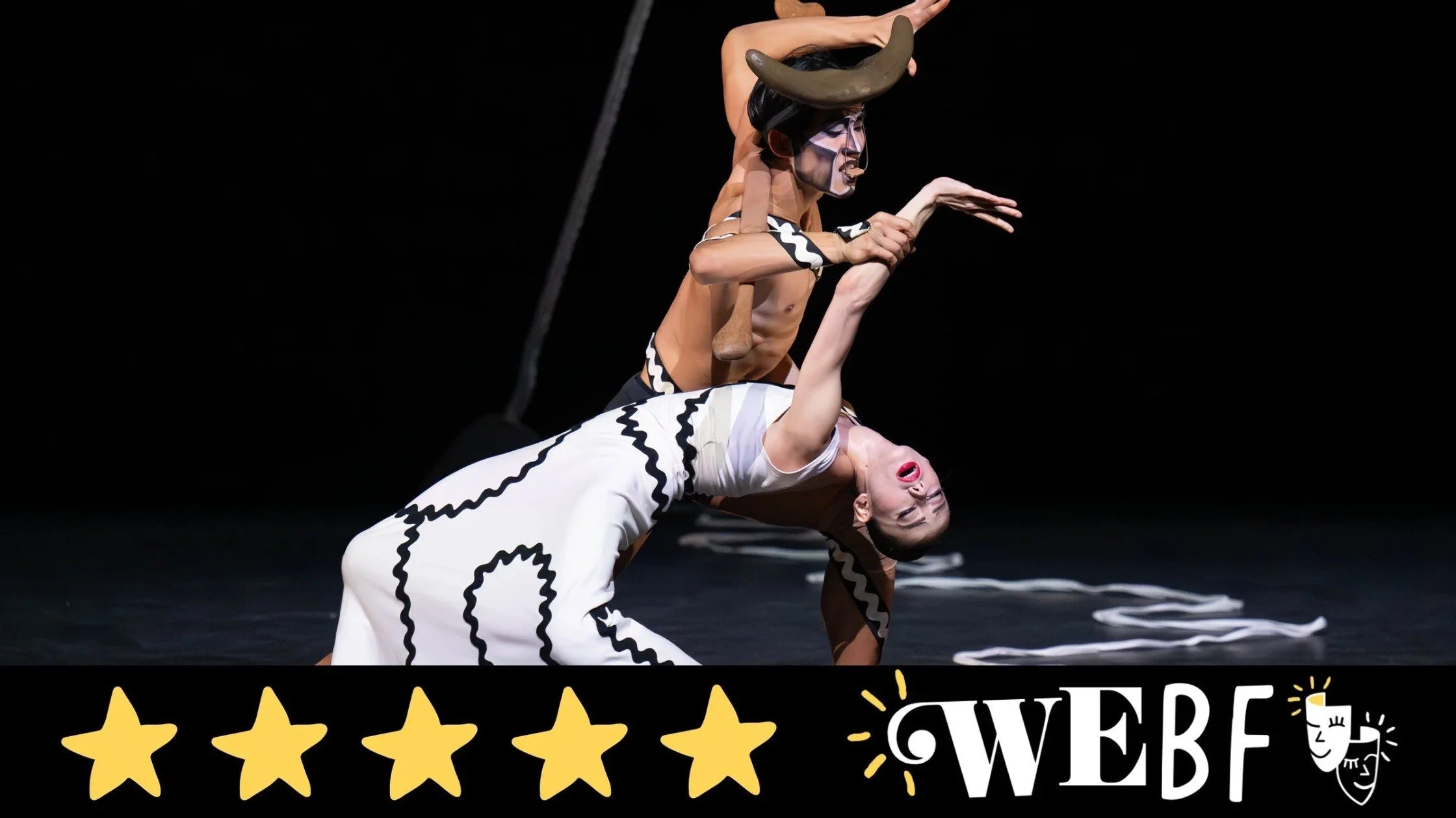 The next piece is a stark contrast. “Errand into the Maze” by Martha Graham is based on the Greek mythology of the Labyrinth, designed to imprison the Minotaur. The set is pitch black aside from a Cheshire-cat-smile moon, a barren tree and a string laid across the stage to suggest the walls of the maze. The dramatic, discordant music by Gian Carlo Menotti creates a sense of unease as the lead dancer, potentially Theseus, battles with the Minotaur, who is eventually slain. An impressive two-hander that encapsulates the famous conflict.