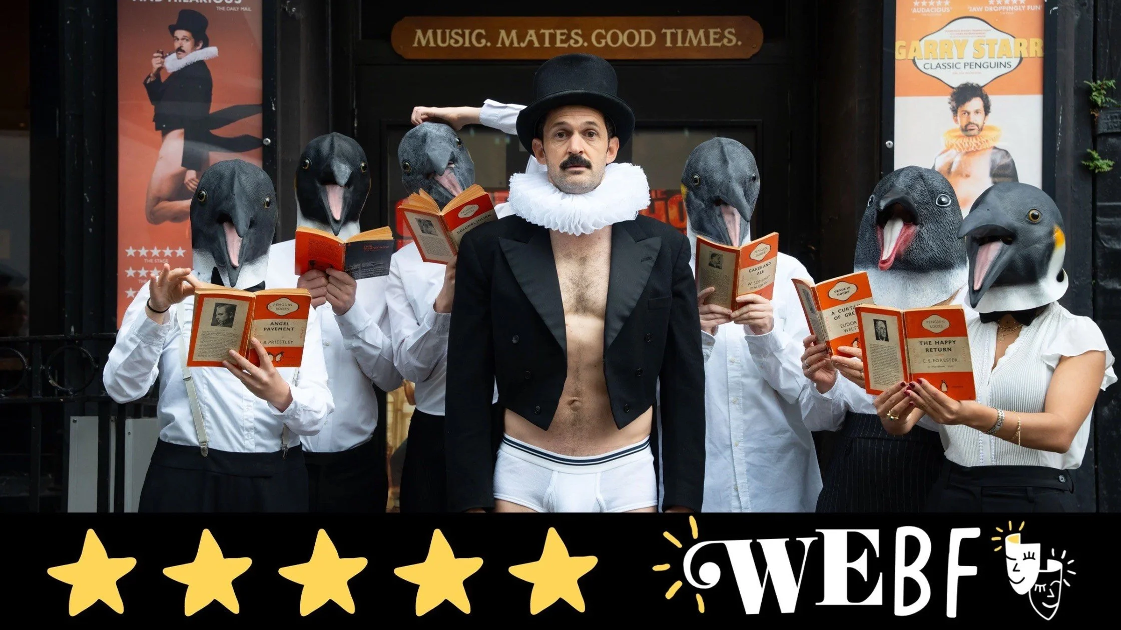 Starr notoriously performs this show almost completely nude, dressed only in a tailcoat and flippers. Be-flippered and penguin-waddling across the stage, Starr - in little over an hour - performs the comprehensive canon of Penguin classic literature.