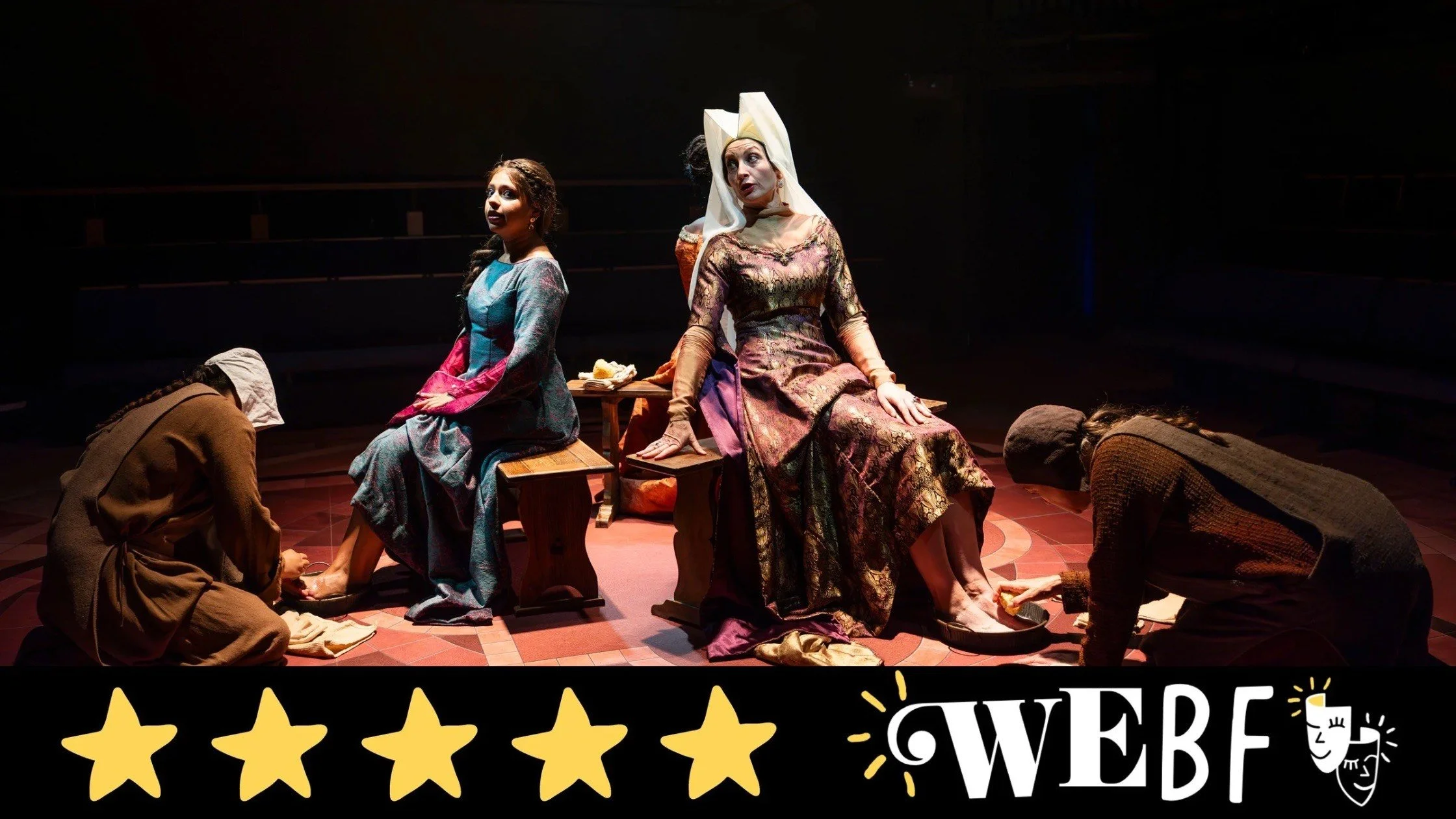Arsema Thomas makes an impressive professional stage debut as Clare, portraying the gradual eye-opening transformation from privileged daughter destined for an arranged marriage to a rich suitor, to the simplicity of a life in a nunnery dressed in sackcloth. It is a portrayal of intelligence, intensity and humanity as she establishes the headstrong motivation that gave up so much. Her relationship with her younger sister Beatrice (Anushka Chakravarti) is charmingly played with great comic skills in the bickering, pauses, looks and delivery between them.