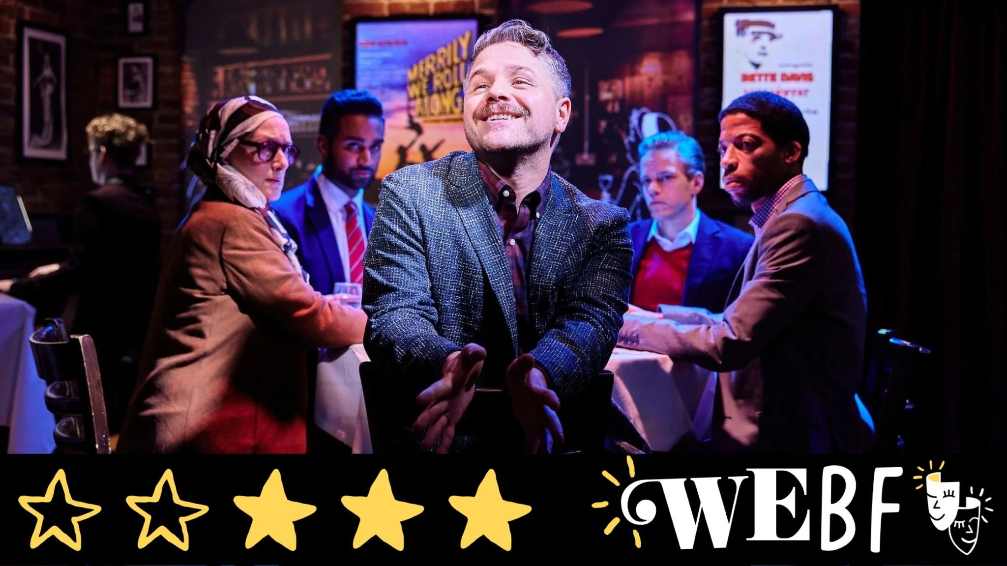 In the European premiere of Mark Gerrard’s witty and touching play, we meet a group of five forty-something New Yorkers in Manhattan restaurant, Joe Allen. They are celebrating Steven’s (David Ames) 47th birthday. The Seven Dials Playhouse, a 100-seater venue (seating some of the audience at restaurant tables on the stage), is fittingly cosy for this play about a close group of friends. They are all going through something; the challenges of monogamy in a long-term relationship, acceptance (or not) of ageing, parenthood and preparing for loss.