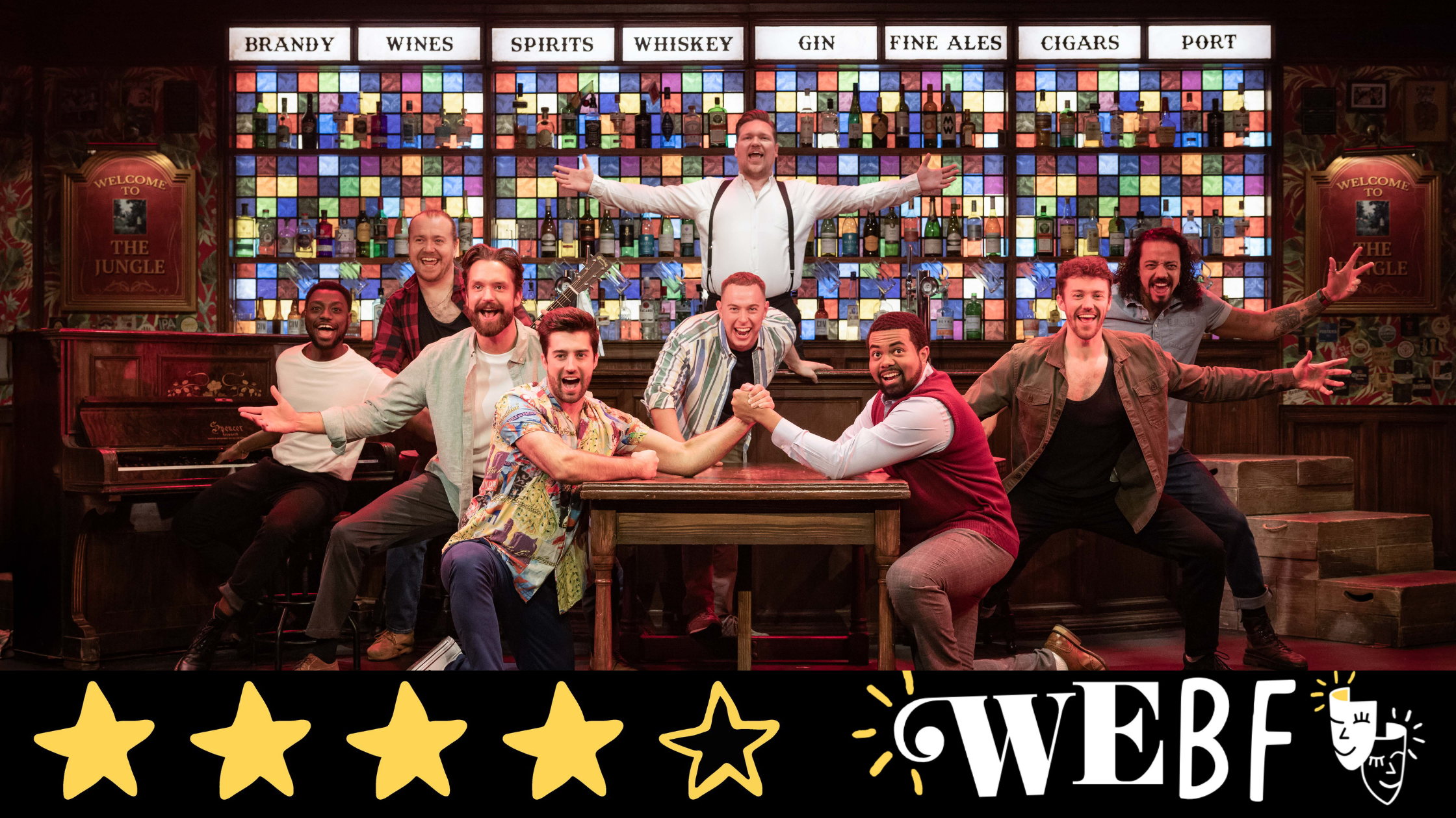 Adding to this immersive atmosphere is the unique pub setting. The on-stage bar, which is open before the show and during the interval, creates a fun, social environment where you can amusingly have a drink with the cast. The fact that drinks are also handed out during the performance is a playful and memorable touch that reinforces the show’s communal spirit.
