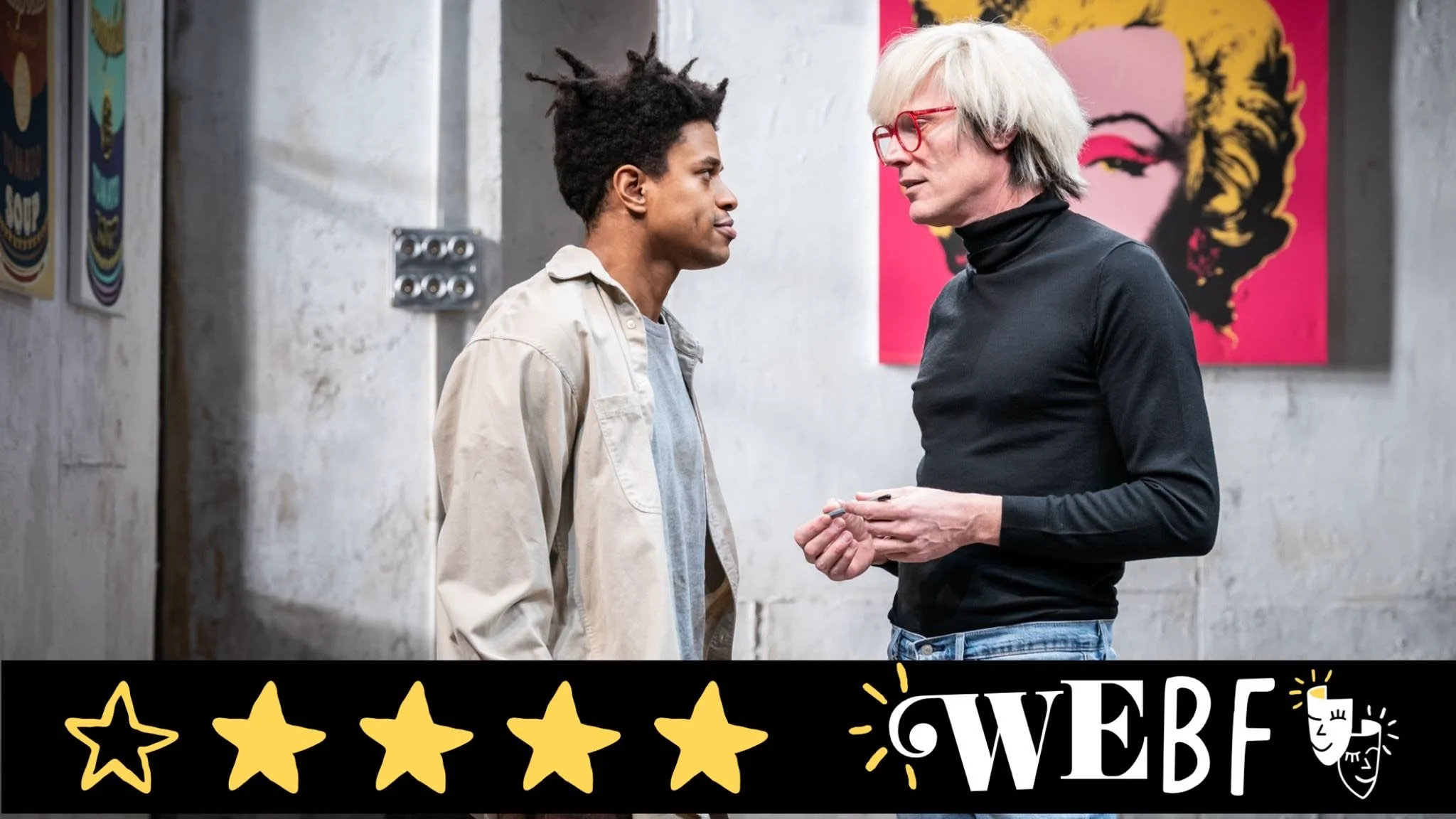 Yes, it's a lot - this certainly isn't casual viewing, it's not trying to be. This play (penned by Anthony McCarten), whilst having a few comedic moments, always takes itself seriously. It's the right balance of entertainment and insight, and while the bulk of the narrative happens in the outside world, the audience is invited into the lives of these two artists (Warhol played by Paul Bettany and Basquiat by Jeremy Pope) and their reactions to one another and the world around them.