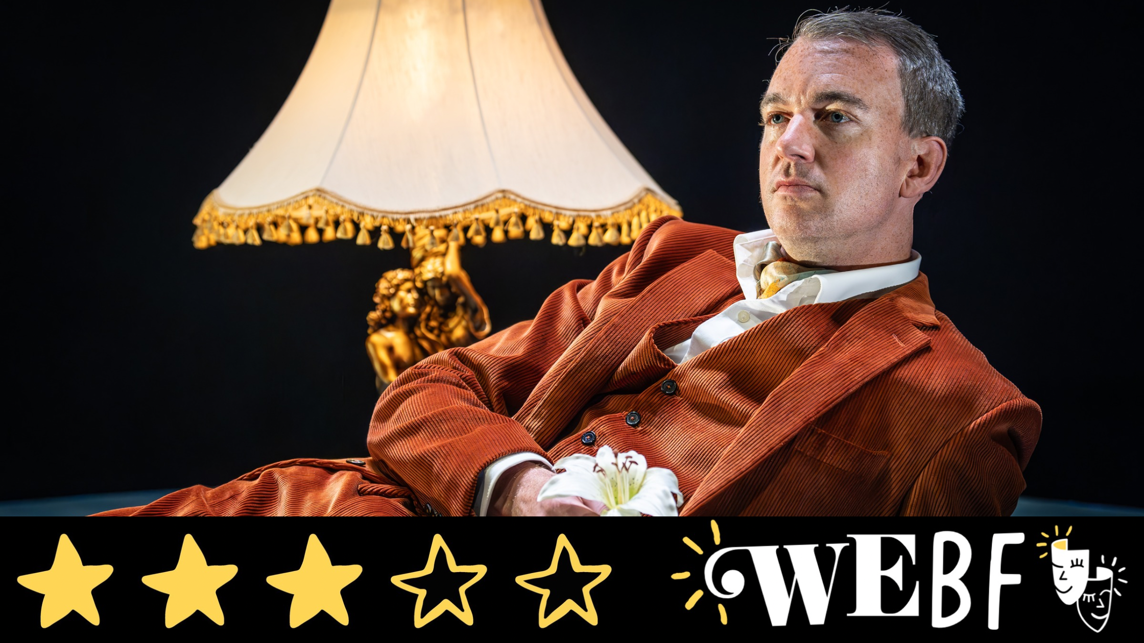 This title tempted Alistair Whatley, the Artistic Director of Original Theatre, to tackle himself the huge task of delivering the monologue based on the writings of Oscar Wilde and memoirs of his close associates Lord Alfred Douglas (Bosie), Robbie Ross, and Ada Leverson (who he called The Sphinx). With an absolute minimum of props, he brilliantly brings to life their words in a narrative that chronologically follows Wilde’s life in London, America, Reading, France and Italy. The stripped back staging of a small, raised dais, a lamp standard and a stool limits his interactions, but drama is added by the simple clever lighting from the side of the stage designed by Chris Davey.