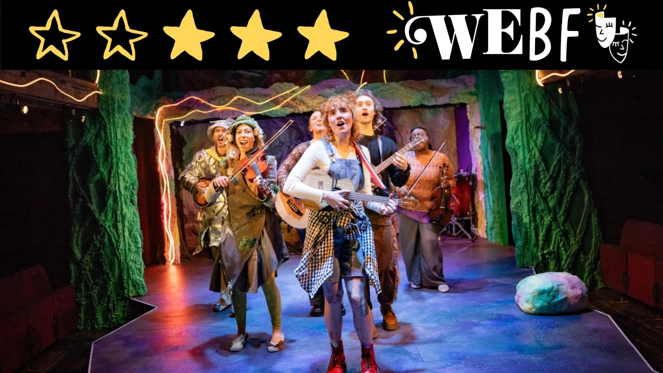 Despite the slightly clumsy adaptation, there are some incredibly strong performances, notably Angela Caesar who brings a delightfully evil malice to Westly, and gives a very comical portrayal of The Wizard. As is the norm at The Watermill, the cast all also play instruments, and Nick Barstow, who composed the music for the piece, has created a real earworm in “follow the yellow route”.