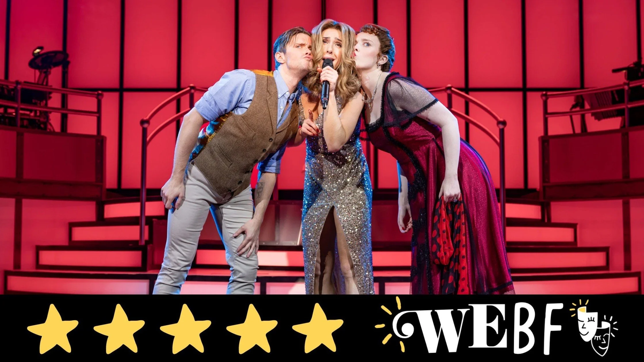 Celine Dion has been described as the ‘Queen of Power Ballads’ and Lauren Drew rises to the challenge of this title with ease. Her powerhouse vocals are out of this world and her side-splitting French-Canadian accent is the perfect combination of homage and jest. Drew oozes charisma: her casting and comedic timing are perfection. The improv scene with Rob Houchen and Kat Ronney as Jack and Rose brings tears of laughter to our eyes.