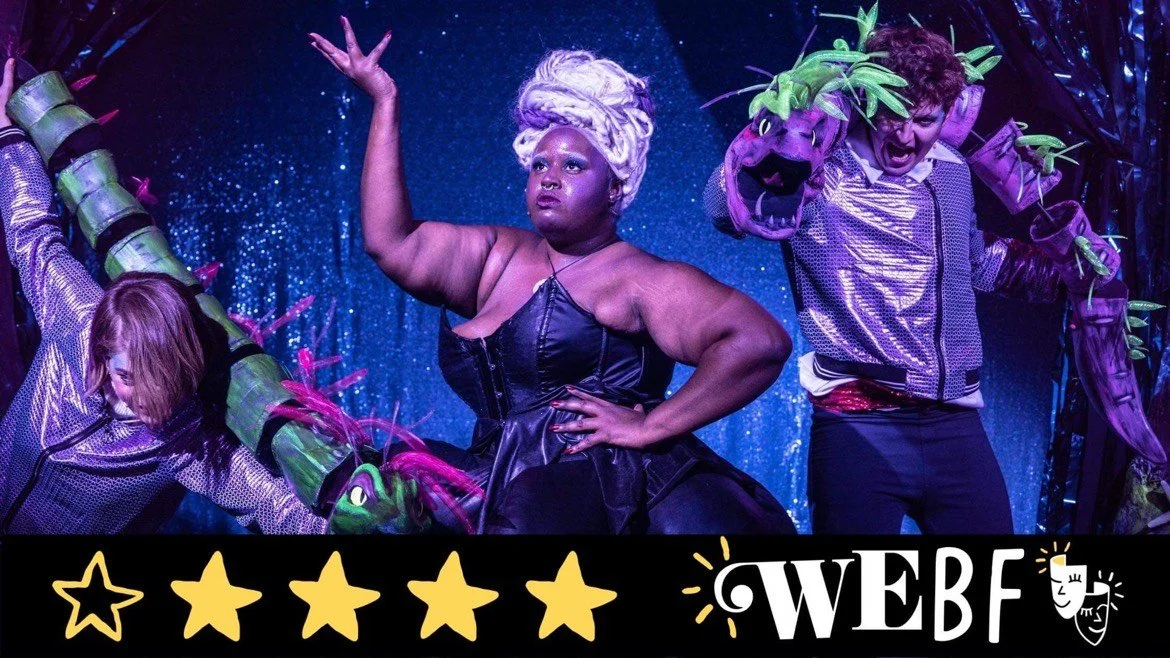 Unfortunate follows, as the title explains, the untold story of Ursula, portrayed by Elliotte Williams-N'Dure. Williams-N'Dure is commanding yet vulnerable in the role, but what makes this show so enjoyable is its full ensemble cast. The remainder of the cast multi-role as all of your favourite Little Mermaid characters, including Scuttle the seagull, King Triton, Flounder, Ursula’s eels, and of course Ariel. Despite being just a cast of six, the actors work so exceptionally hard throughout Unfortunate to fulfil each part that this is easy to forget there are so few.