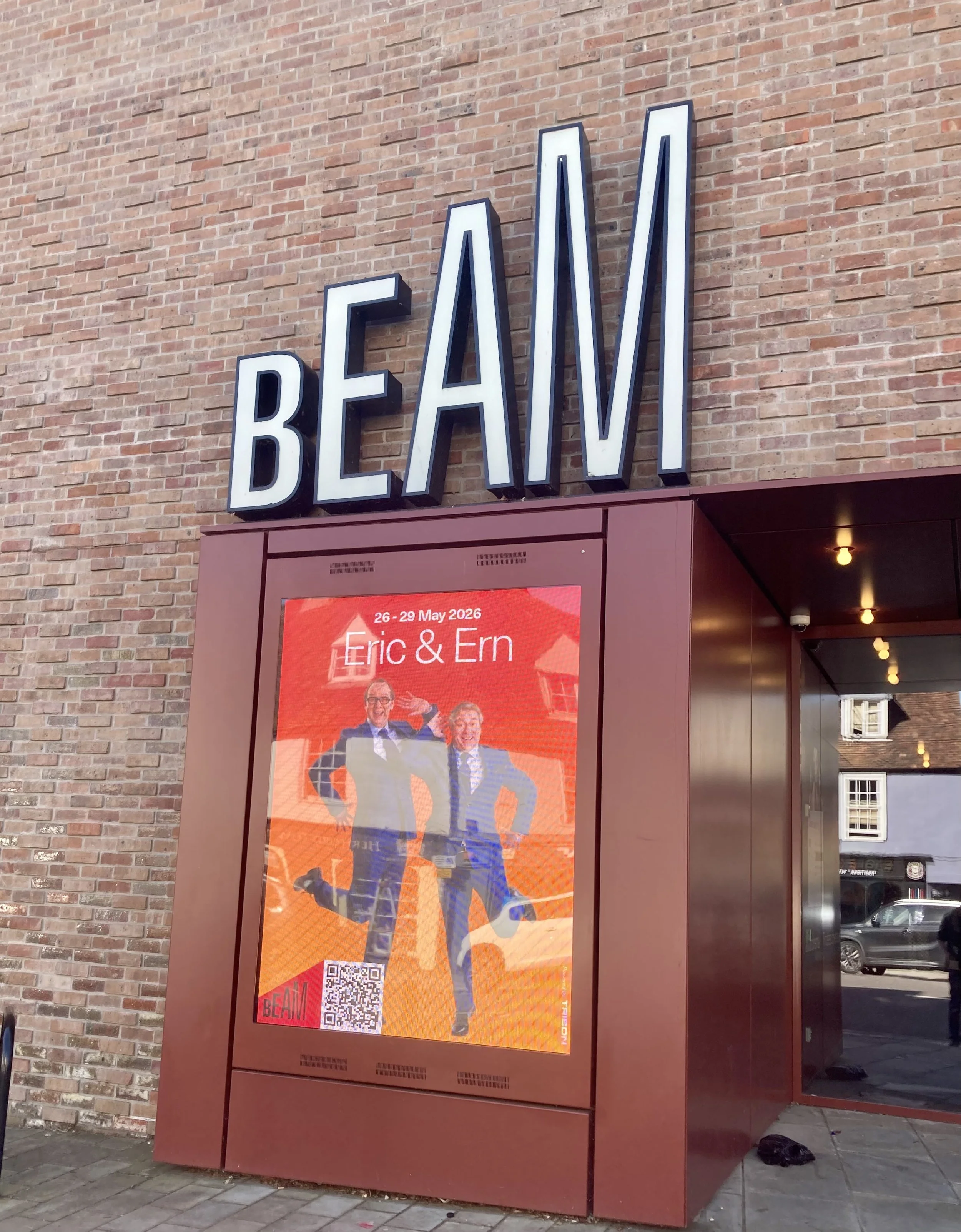 BEAM opened in August 2024 as a new multi-cultural destination in Hertford, with a kitchen bar, the Stalls of the Main House Stage One and the Pit of Stage Two on the ground floor, while on the first floor are the cinema screens and bar and access to Stage One Circle and Stage Two Balcony. It is an East Herts Council run, £30 million redevelopment of the previously known Hertford Theatre, which seated four hundred, having opened in 1977. It was designed by Bennetts Associates and Citizens Design Bureau, and has already attracted several design awards.