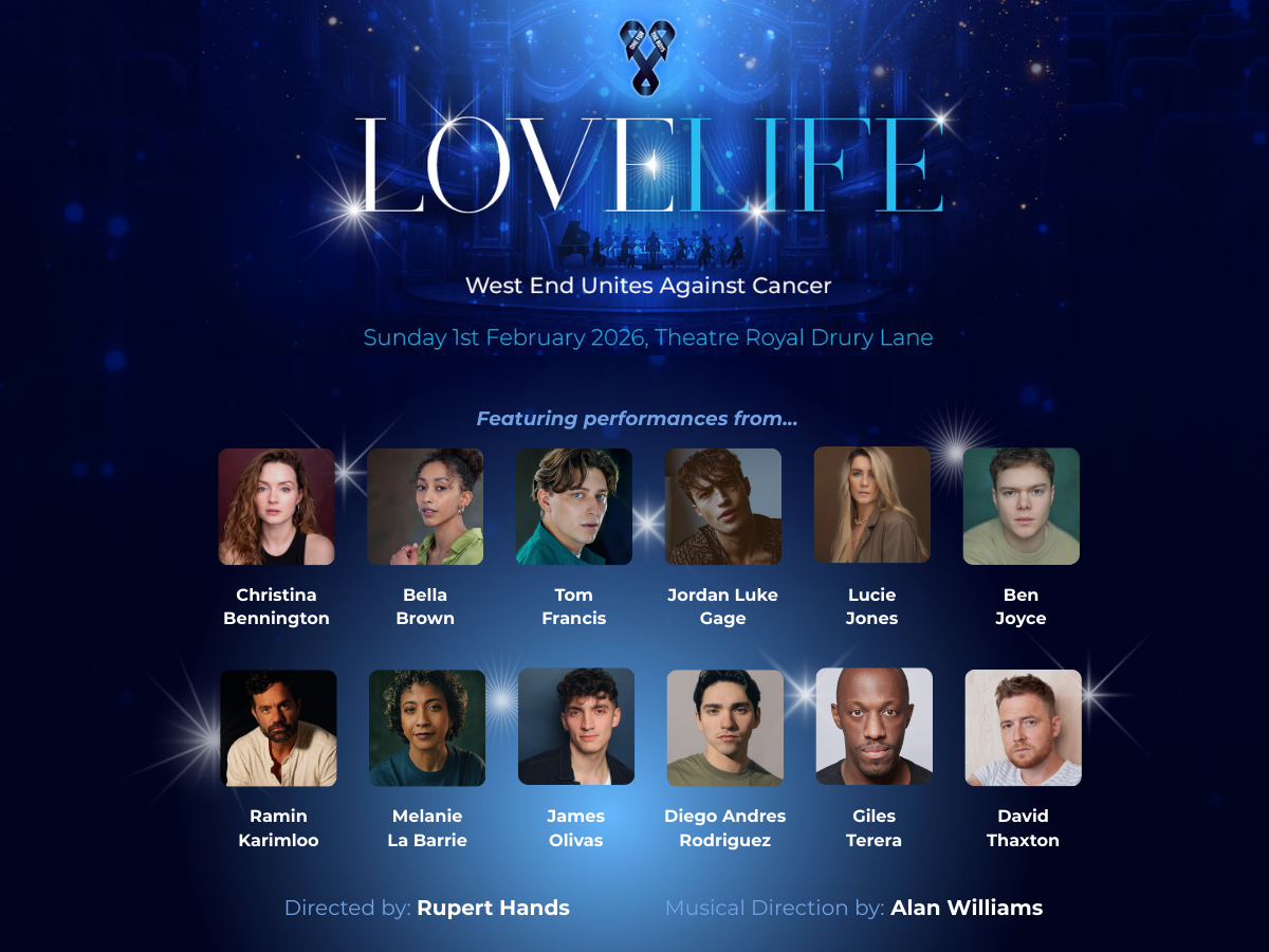 This February, the West End theatre community will come together for Love Life: West End Unites Against Cancer, a major one-night-only concert at Theatre Royal Drury Lane in support of One For The Boys, the men’s health charity working to break the silence around male cancer.