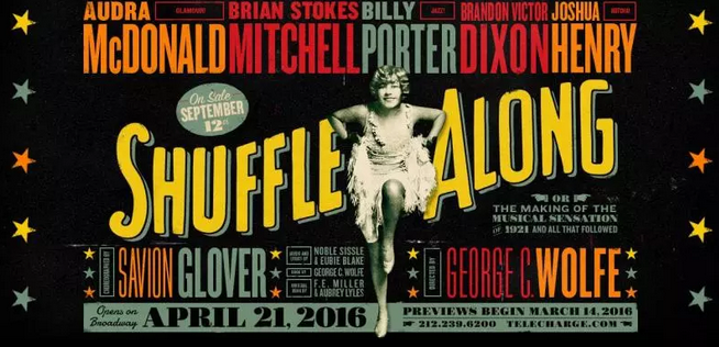 Shuffle Along, or, the Making of the Musical Sensation of 1921 and All That Followed is a 2016 musical, using the original 1921 musical of Shuffle Along as its basis. Shuffle Along is a 1921 musical that was written by four African American vaudeville veterans: Eubie Blake, Noble Sissle, Flournoy Miller and Aubrey Lyles, as their first venture into creating a show. Shuffle Along struggled financially throughout its initial tour before Broadway as, due to the ever-raging ignorance of white America, producers were hesitant to invest in a show created by people of colour. However, upon finding the money, the show proved to be a hit, spawning several tours and launching the careers of many Vaudeville legends. The show’s success broke ground by bringing all races together and helped to unite White Broadway and African American jazz communities to improve race relations in America. Shuffle Along, or, the Making of the Musical Sensation of 1921 and All That Followed shows the challenges of mounting the original 1921 production and the effect that it had on race relations. The libretto of the new production is written by George C. Wolfe, based on Miller and Lyles original book, and focuses heavily on the relationships between the four writers and how it changed over the years with the success, legacy of the show and its fade into obscurity. Shuffle Along was performed with an all-black cast, however, Wolfe’s production included a white actor to embody the comments of white critics and outsiders during the time of the show.