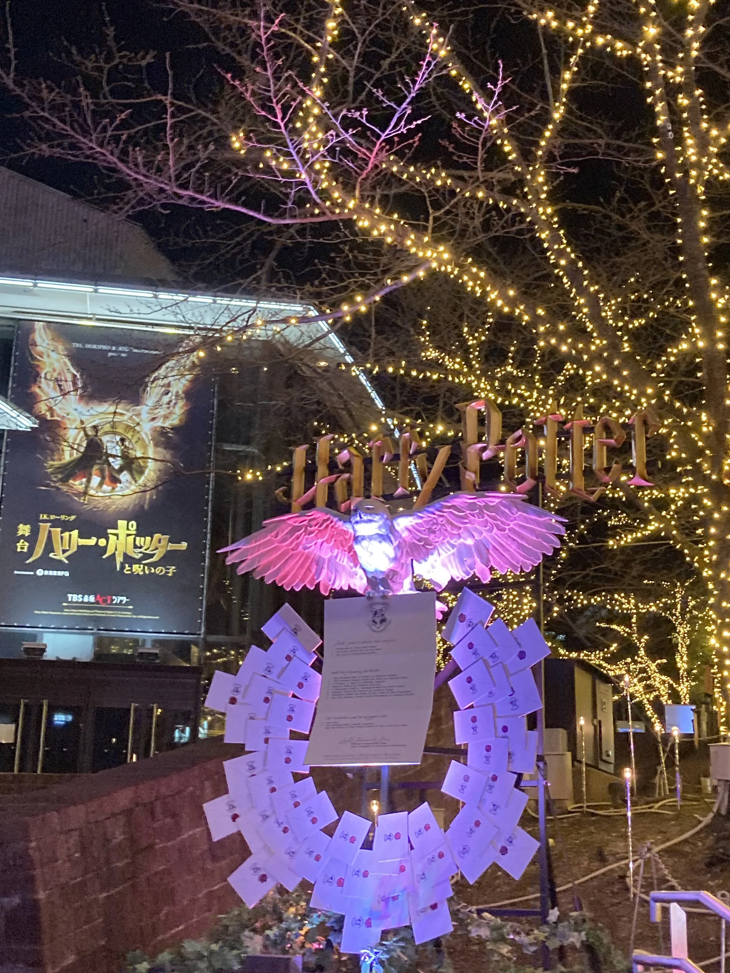 One thing that the Japanese production does exceed the London version in was in the street dressing around the theatre which is outstanding with an array of house flags, a giant time turner and the white owl that delivers Hogwarts invites to new students. The tunnel from the nearest tube is dressed in the famous portraits that adorn Hogwarts walls.
